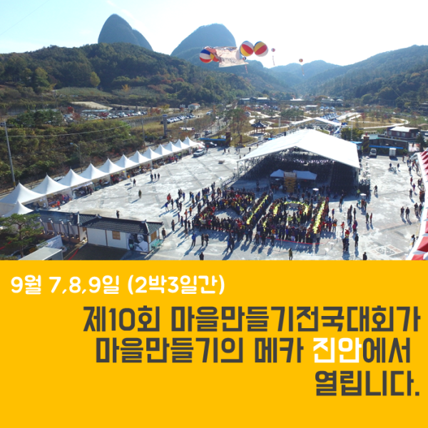 · 제10회 마을만들기전국대회 조직위원회 사무국 (진안군마을만들기지원센터) 전화 : 063-433-2014