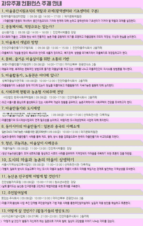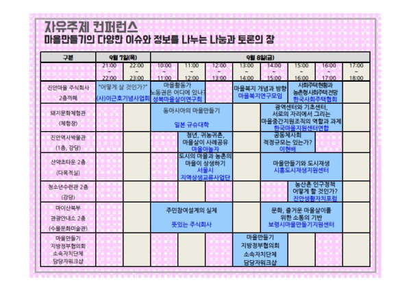9.7(목) 부터 9.9(토)까지 진행하는 제10회 마을만들기전국대회의 프로그램을 소개합니다.