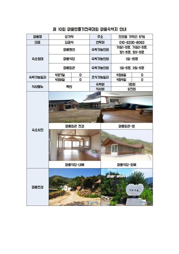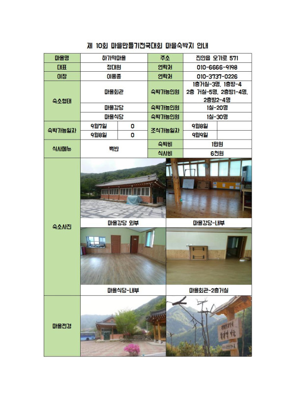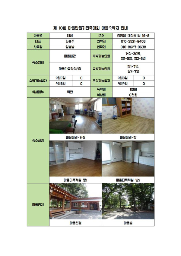 제10회 마을만들기전국대회 참여하는 마을숙박 안내해드립니다.