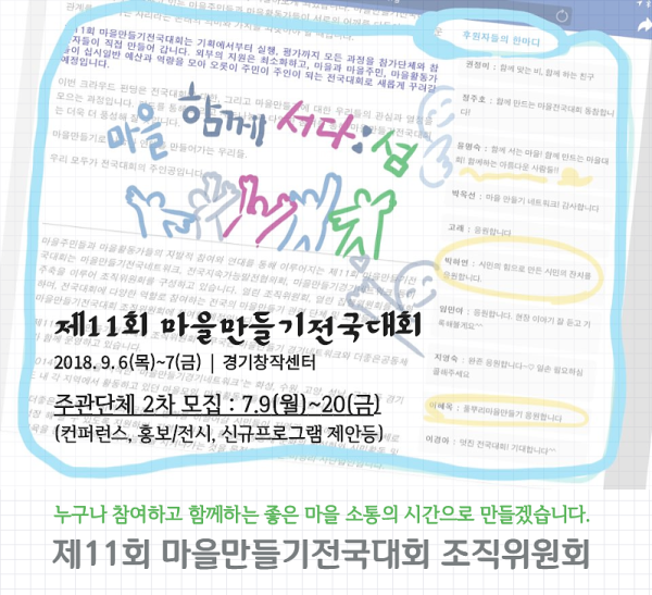 [11회전국대회_2018] 제11회 마을만들기전국대회 주관단체 2차 모집(컨퍼런스, 전시/홍보 부스, 신규 프로그램 신청)