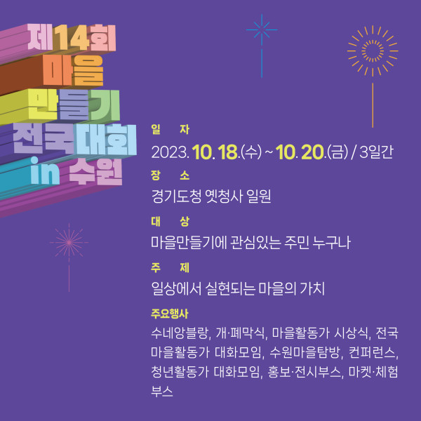[14회전국대회_2023] 제14회 마을만들기전국대회 in수원 참가자 모집
