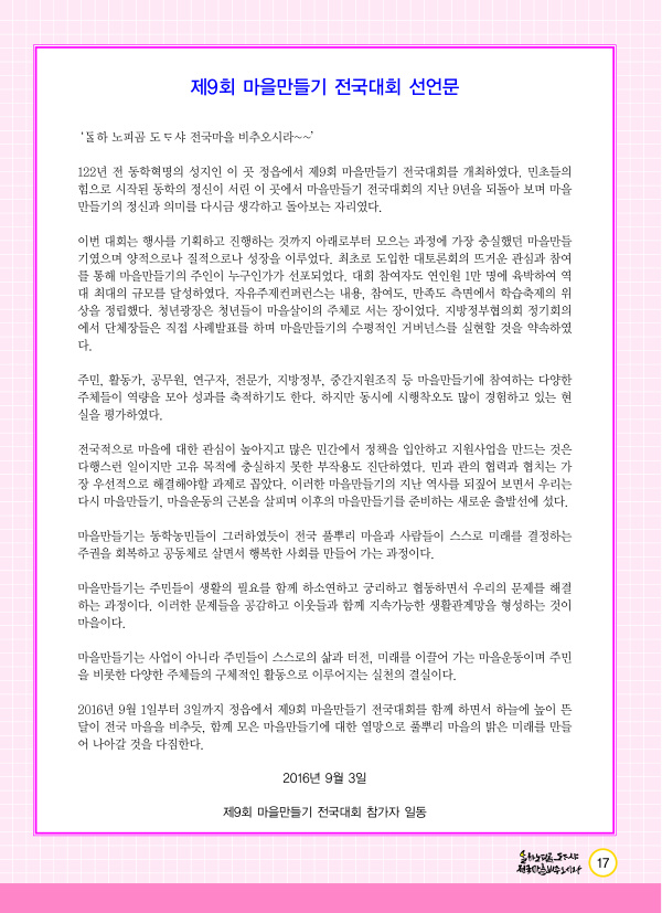 [9회전국대회_2016] 제9회마을만들기전국대회 선언문