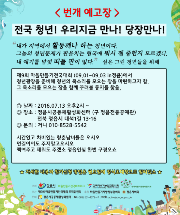 [9회전국대회_2016] [제9회 마을만들기전국대회] 청년광장을 위한 번개모임(07.13)_예고장