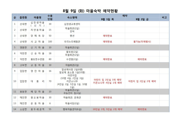08.09(화) 마을숙박 예약현황(확인필!)