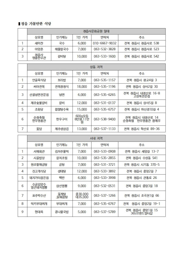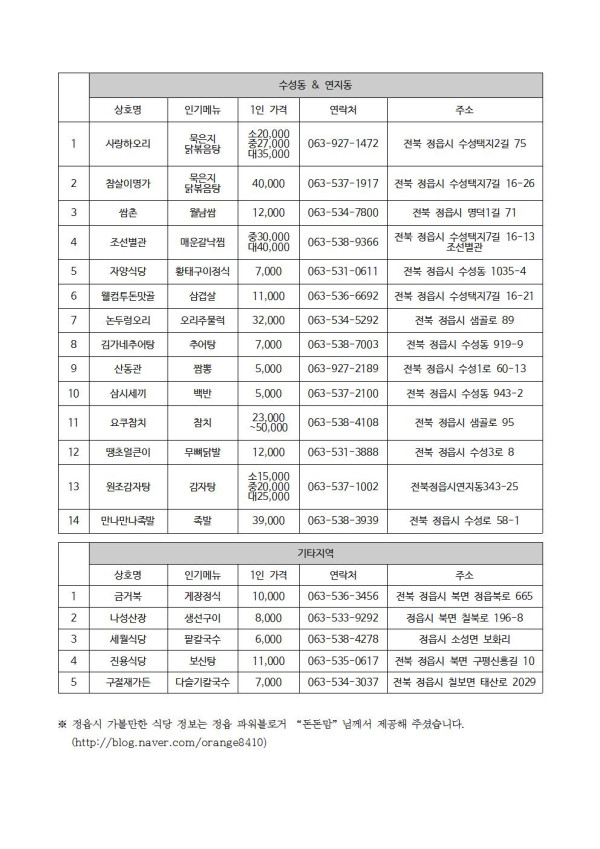 *식당리스트는 정읍시 파워블로거 돈돈맘님께서 제공해주셨습니다!