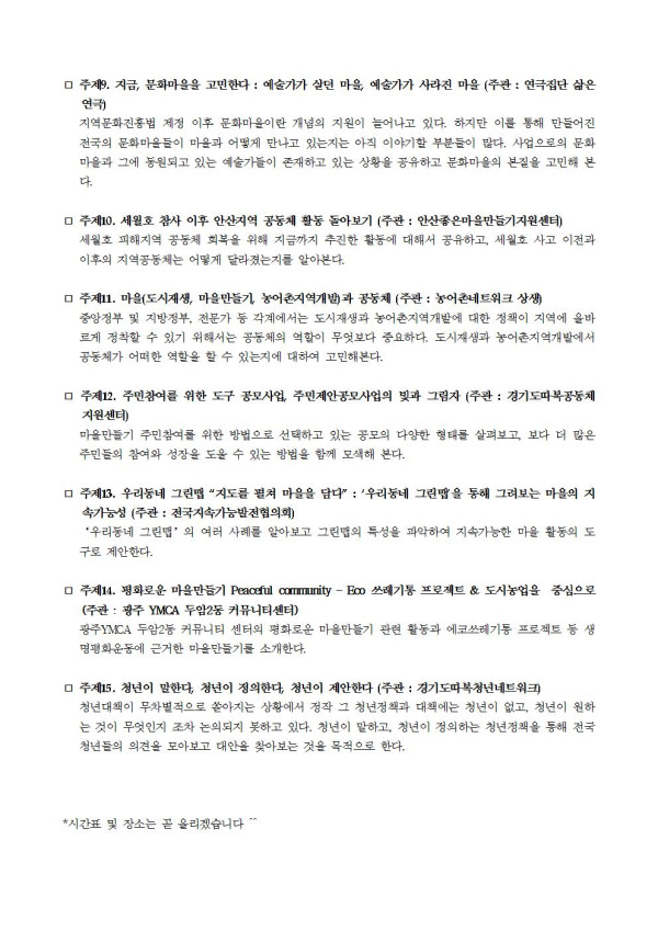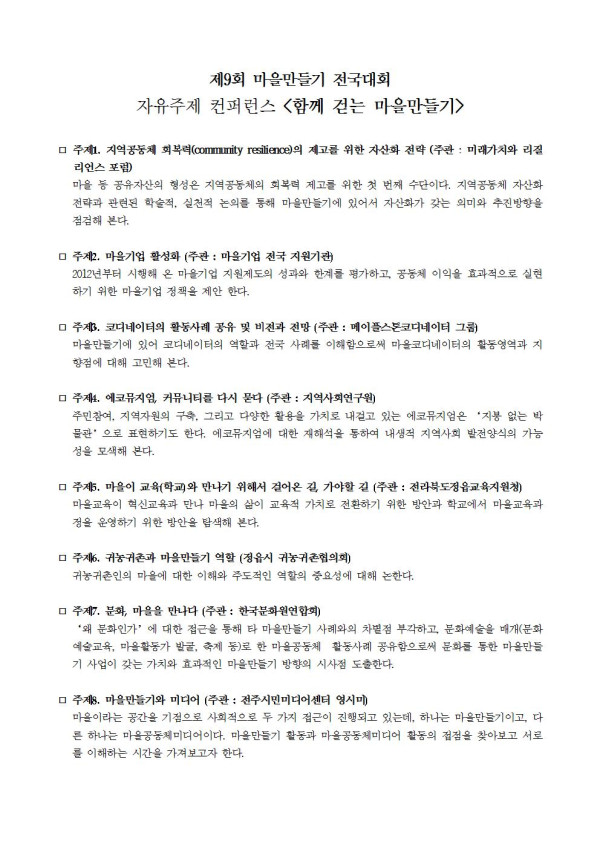 [9회전국대회_2016] 자유주제 컨퍼런스 주제공유 이미경 이미경님의 홈 전체게시물 아이디로 검색 이미경님의 홈 전체게시물 아이디로 검색 2016-08-12 14:54 8,576 0 1 0 이전글 다음글 목록 본문 자유주제컨퍼런스 주제 공유 *자세한 시간표와 장소는 곧 공지해드리겠습니다! - 첨부파일 : 컨퍼런스001.jpg (186.0K) - 다운로드 0 2016-08-12 14:54:34 - 첨부파일 : 컨퍼런스002.jpg (191.7K) - 다운로드 0 2016-08-12 14:54:34 1 0 로그인 후 추천 또는 비추천하실 수 있습니다. 추천한 회원 보기 추천한 회원 신명 신명님의 홈 전체게시물 아이디로 검색 신명님의 홈 전체게시물 아이디로 검색 댓글목록0 등록된 댓글이 없습니다.