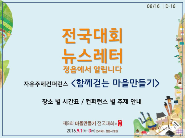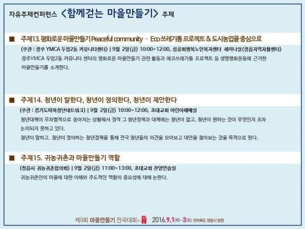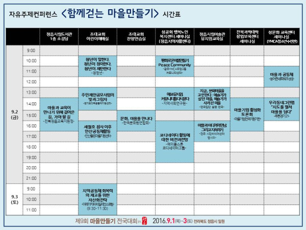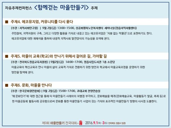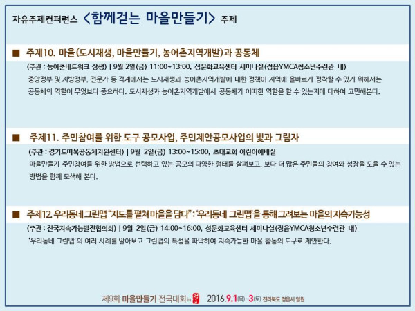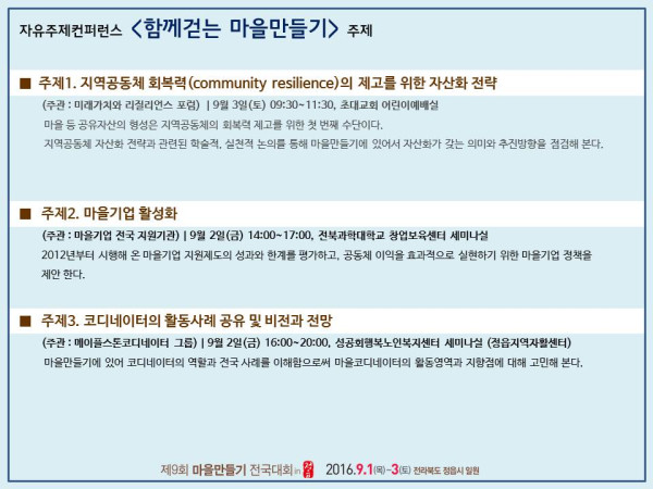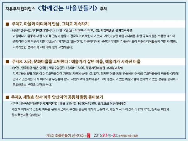 [9회전국대회_2016] 제9회 마을만들기 전국대회 자유주제 컨퍼런스 주제 및 시간표