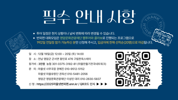 [대화모임 계획] 2025년 마을만들기전국네트워크 대화모임 번외편 in 영암문화관광재단