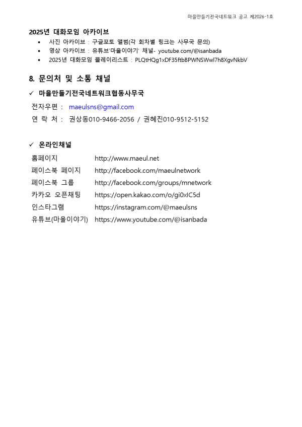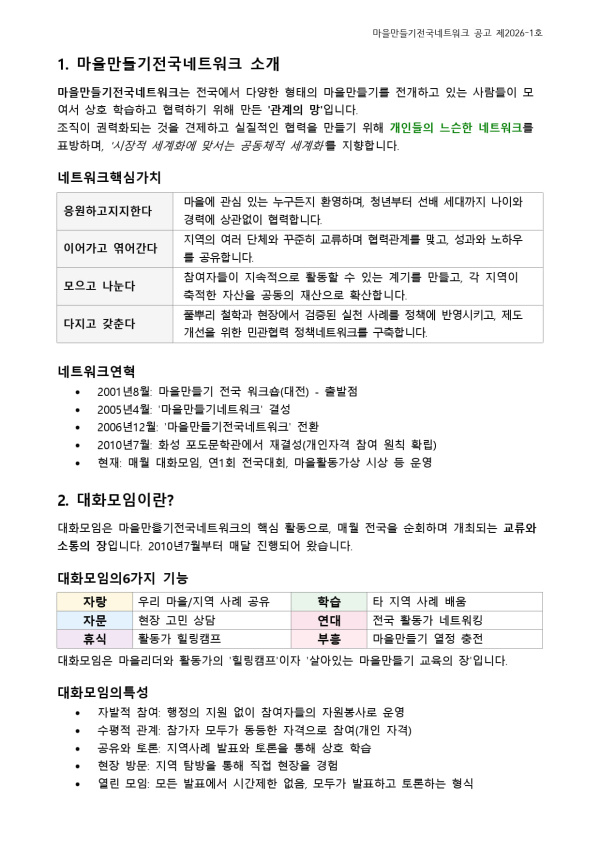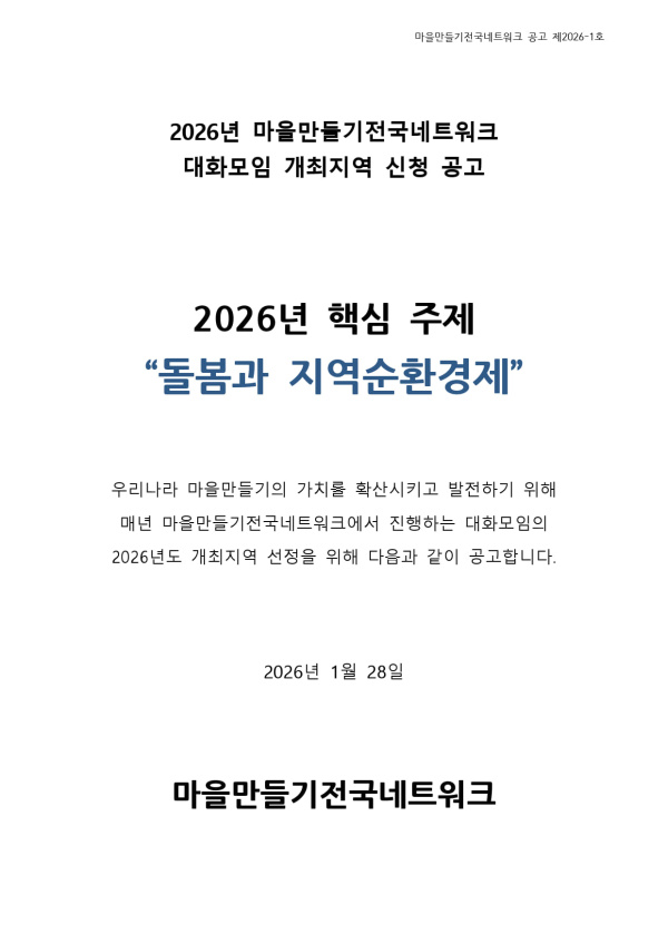 - 첨부파일 : 2026년 마을만들기전국네트워크 대화모임 개최지역 신청공고 v2.1.pdf (182.5K) - 다운로드