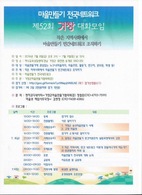 [대화모임 계획] 52회 대화모임(거창 - 2016년 7월 8일)