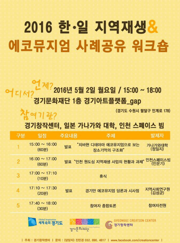[행사/모임] 한일 지역재생&에코뮤지엄 사례공유 워크숍(2016년 5월2일 경기문화재단)
