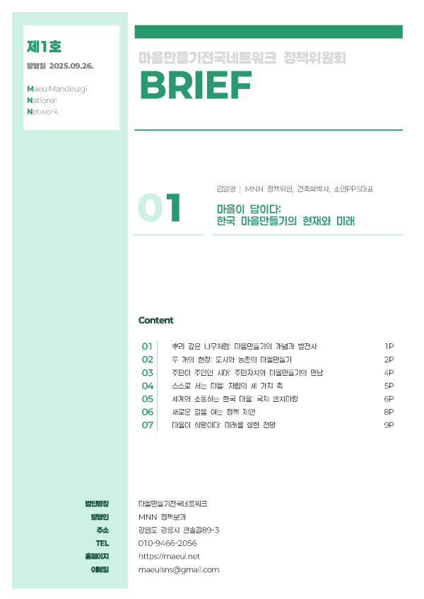 마을만들기전국네트워크 정책브리프 vol1. 마을이 답이다.