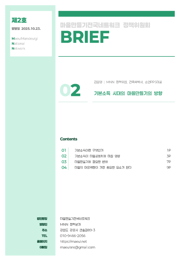 마을만들기전국네트워크 정책브리프 vol2. 기본소득시대의 마을만들기의 방향