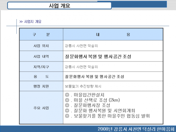 [사례정보] 강릉시 덕실리 질문화 행사 및 행사공간 조성 사업