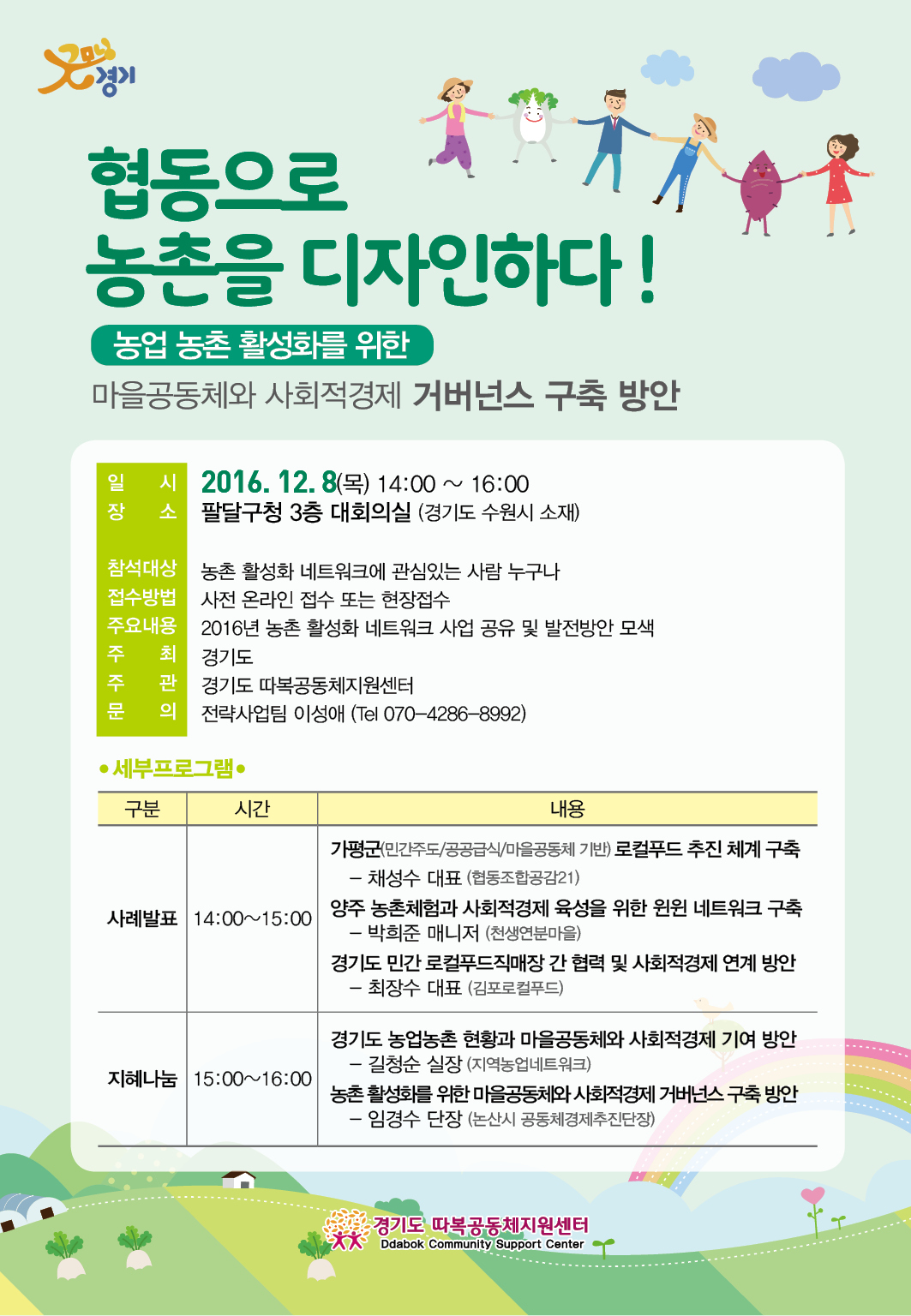 ◎ 따복: 따복포럼 "농업농촌활성화를 위한 마을공동체와 사회적경제 거버넌스 구축방안" (12/8)