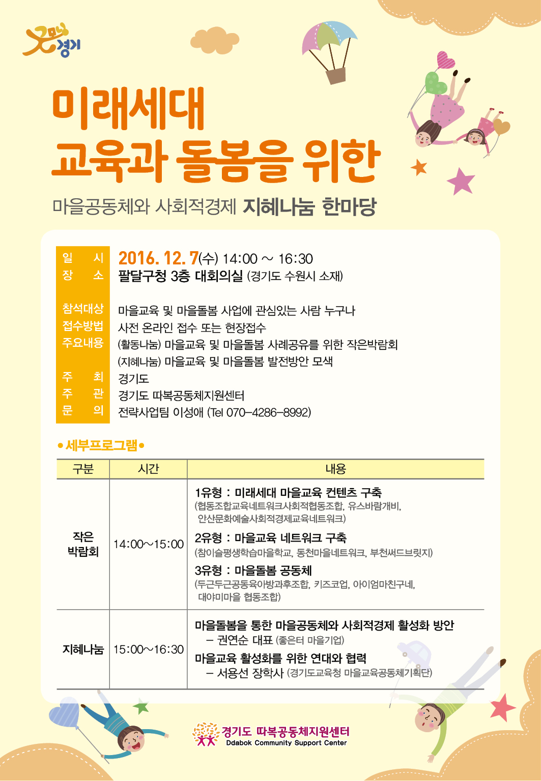 ◎ 따복: 2016 경기도 따복공동체지원센터 성과공유회(12/7~8)