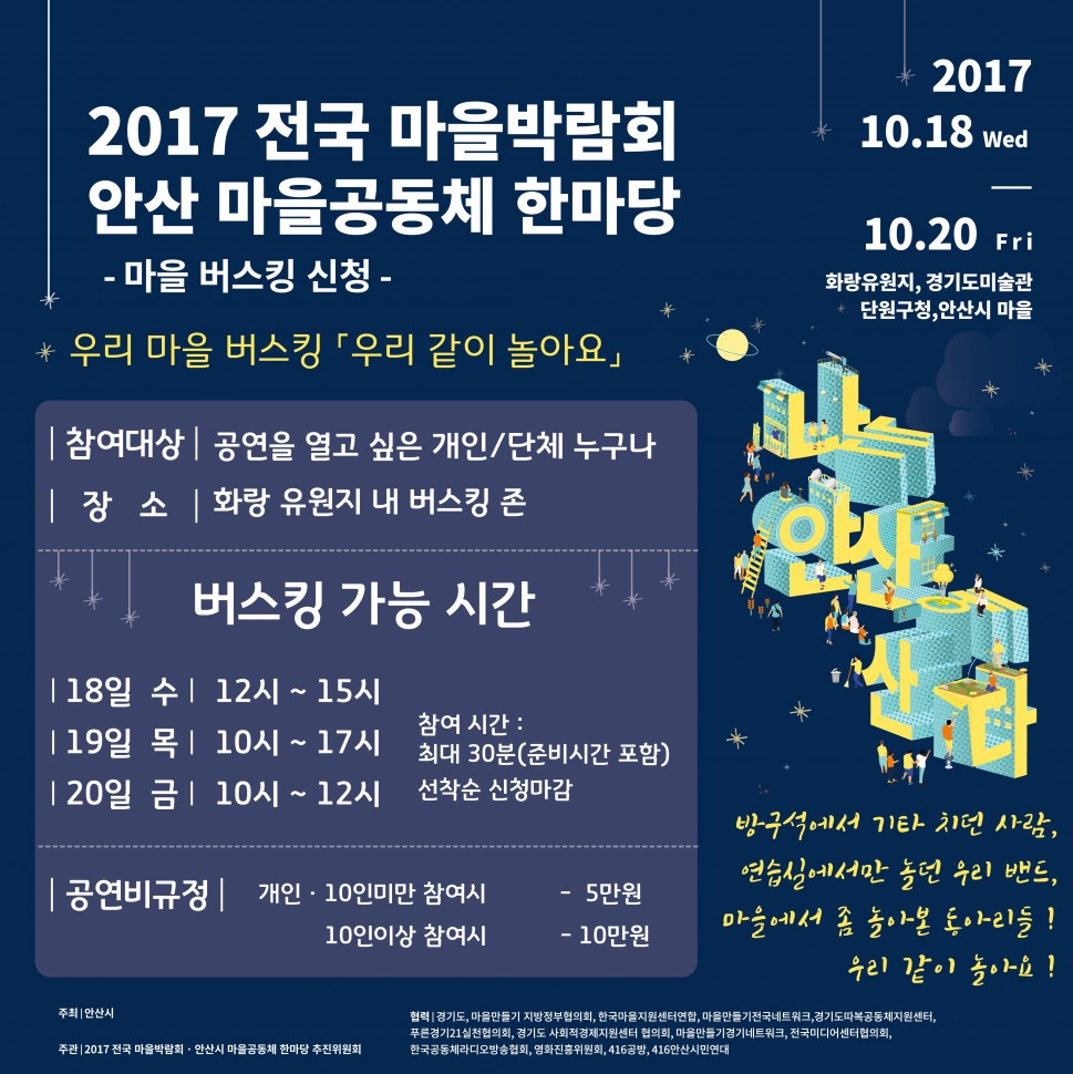 [공지] < 2017 전국마을박람회·안산마을공동체한마당> 마을버스킹 참가자 모집
