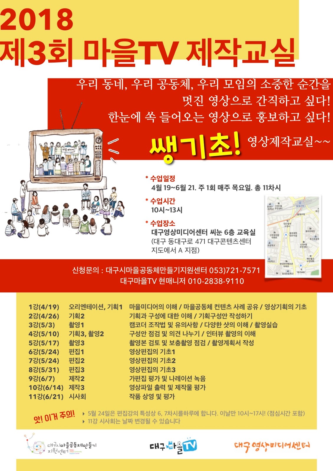 ○대구: 제3회 마을TV 제작교실 (4월 19일 개강)
