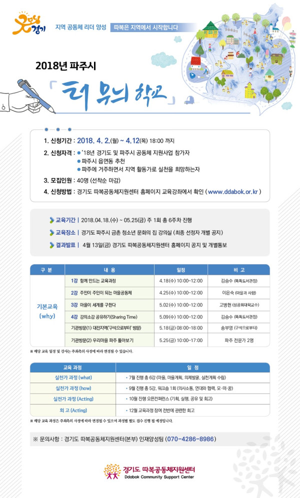 ○경기도: 2018 지역역량 강화 교육 '터무늬학교' (파주시) 수강생 모집 (~4월 12일)
