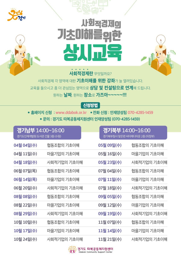 ○경기도: 2018 사회적경제의 기초이해를 위한 기본교육 (상시 진행)