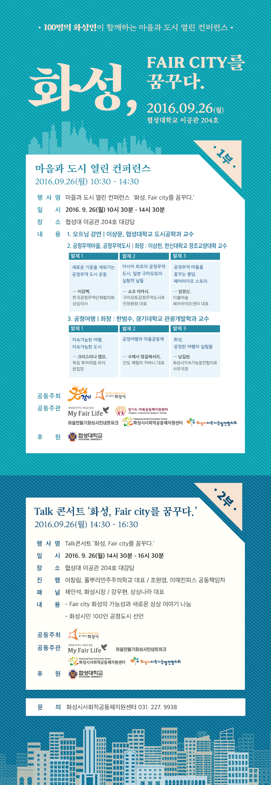지난 26일, 화성에서 공정도시(Fair City)를 이야기하는 자리가 있었습니다. 이날의 컨퍼런스는 한국마을지원센터연합의 회원센터이기도 한 경기도 따복공동체와 화성시사회적공동체지원센터가 마을만들기화성시민네트워크, 화성시지속가능발전협의회, My Fair Life와 함께 공동주관으로 참여한 행사였습니다. 컨퍼런스는 크게 공역마을과 공정여행을 주제로 한 전문가 발제와 공정도시로서의 화성의 가능성을 상상해보는 토크콘서트로 이루어졌습니다. 이 중 마을공동체의 지속가능성과 밀접한 연관을 갖는 공정여행에 대한 논의를 전해드립니다. |
