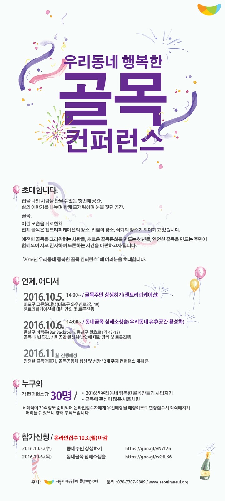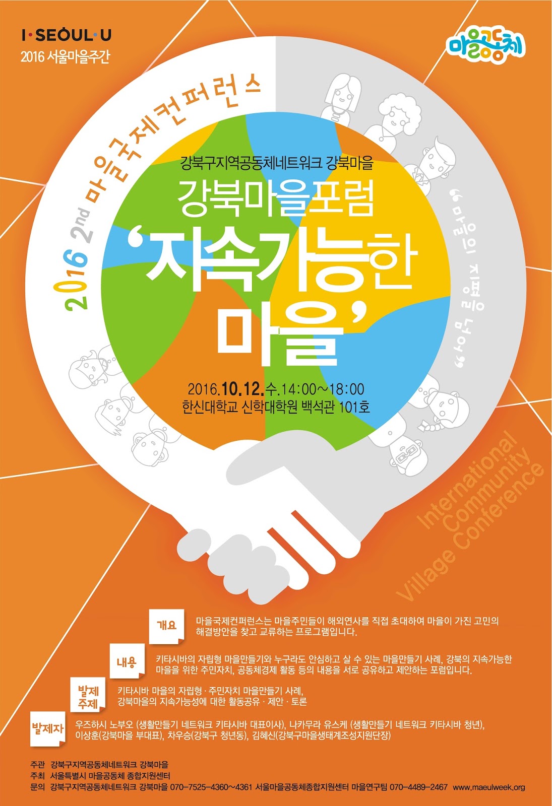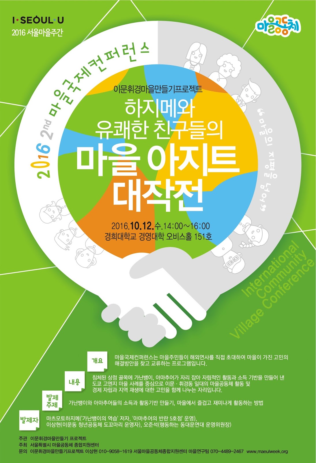 ◎ 서울: 2016 서울마을주간-마을국제컨퍼런스 (10/11~10/12)