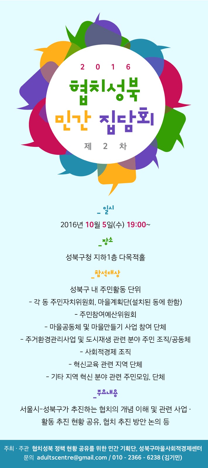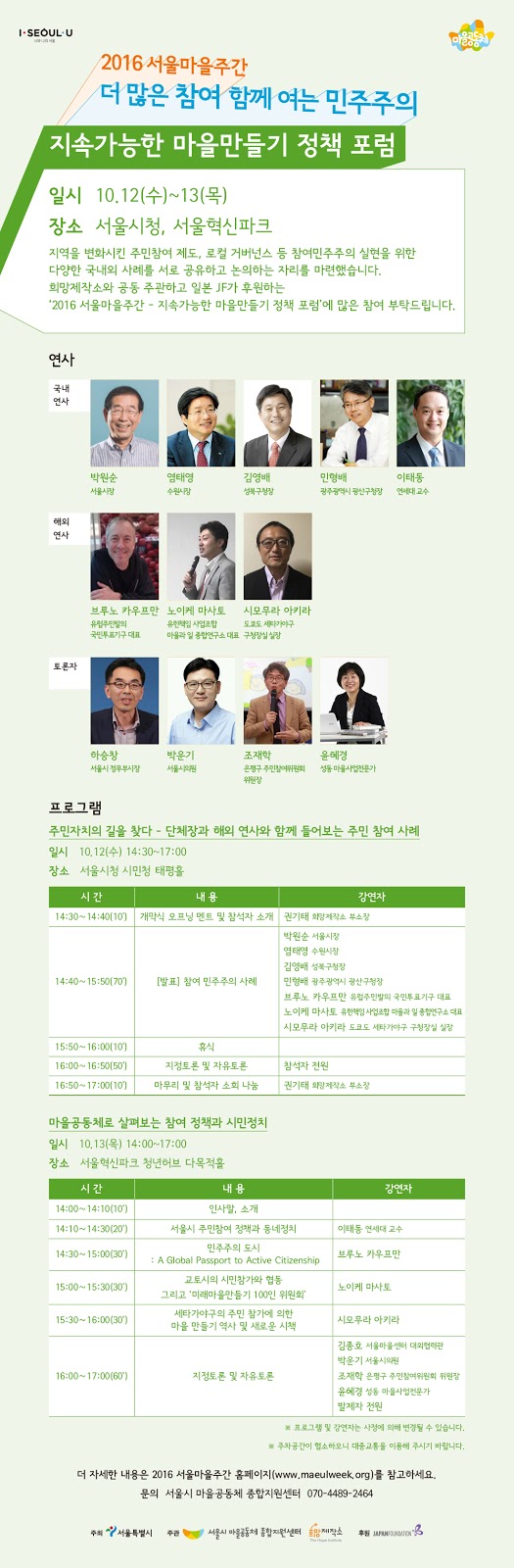 ◎ 서울: 2016 서울마을주간-지속가능한 마을만들기 정책 포럼 (10/12~10/13)