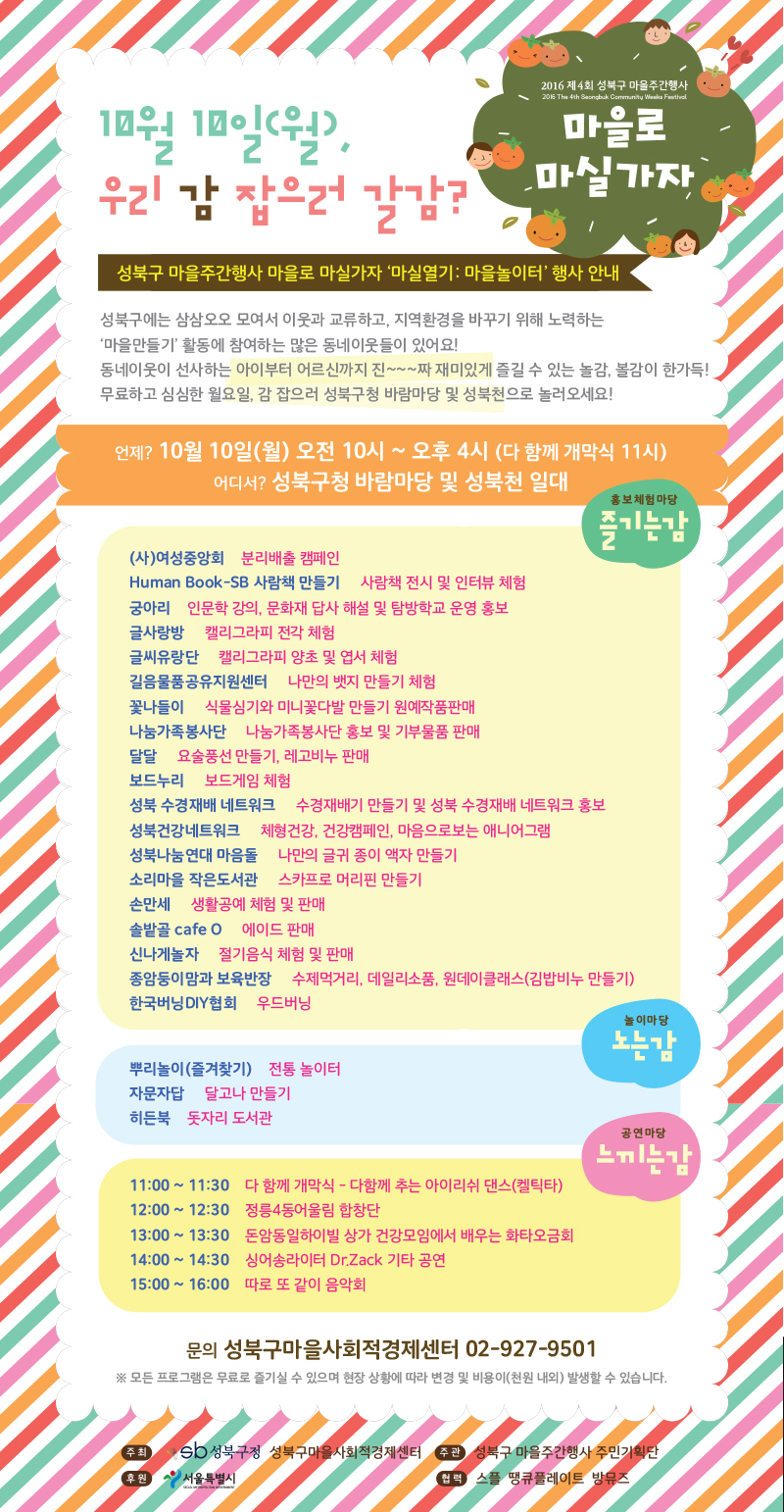 ◎ 성북: [제4회 성북구 마을주간행사] 마실열기: 마을놀이터 행사 안내 (10/10)