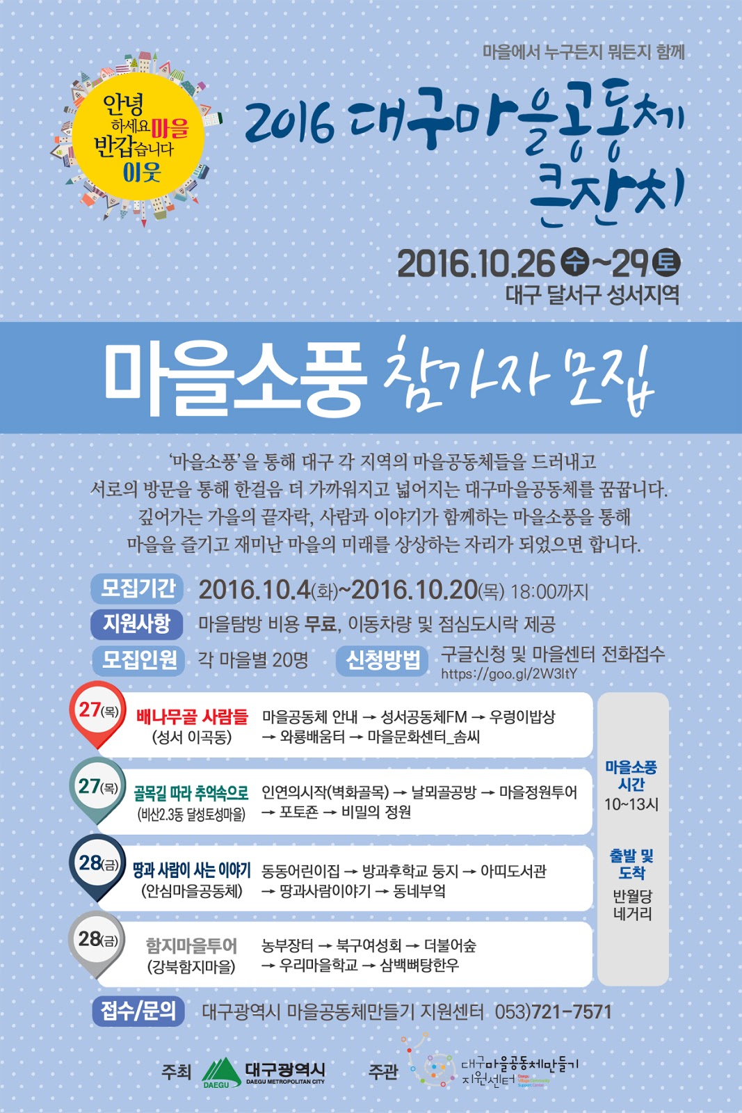 ◎ 따복: [공동체투어주간] 사전에는없는 이웃마을 여행 참여자 모집! (10/24~10/27)